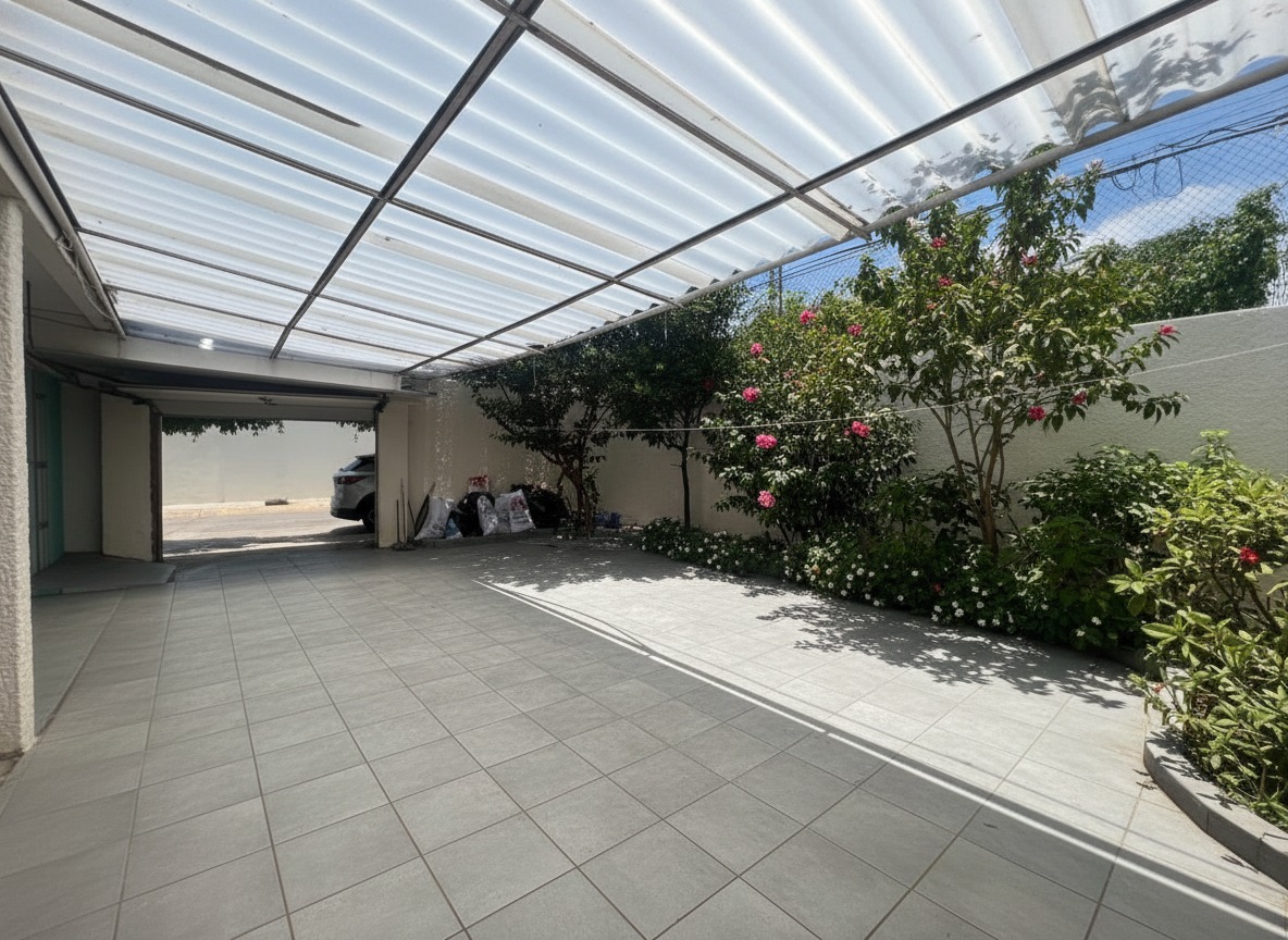 Casa en proceso de renovación en zona residencial, dentro de fraccionamiento privado con seguridad 24/7. Cuenta con cochera semi techada para tres autos, jardín con árboles frutales, lavandería cerrada, oficina o recámara en planta baja con vestidor, medio baño, sala-comedor, cocina con espacio para antecomedor y patio interno. En planta alta dispone de